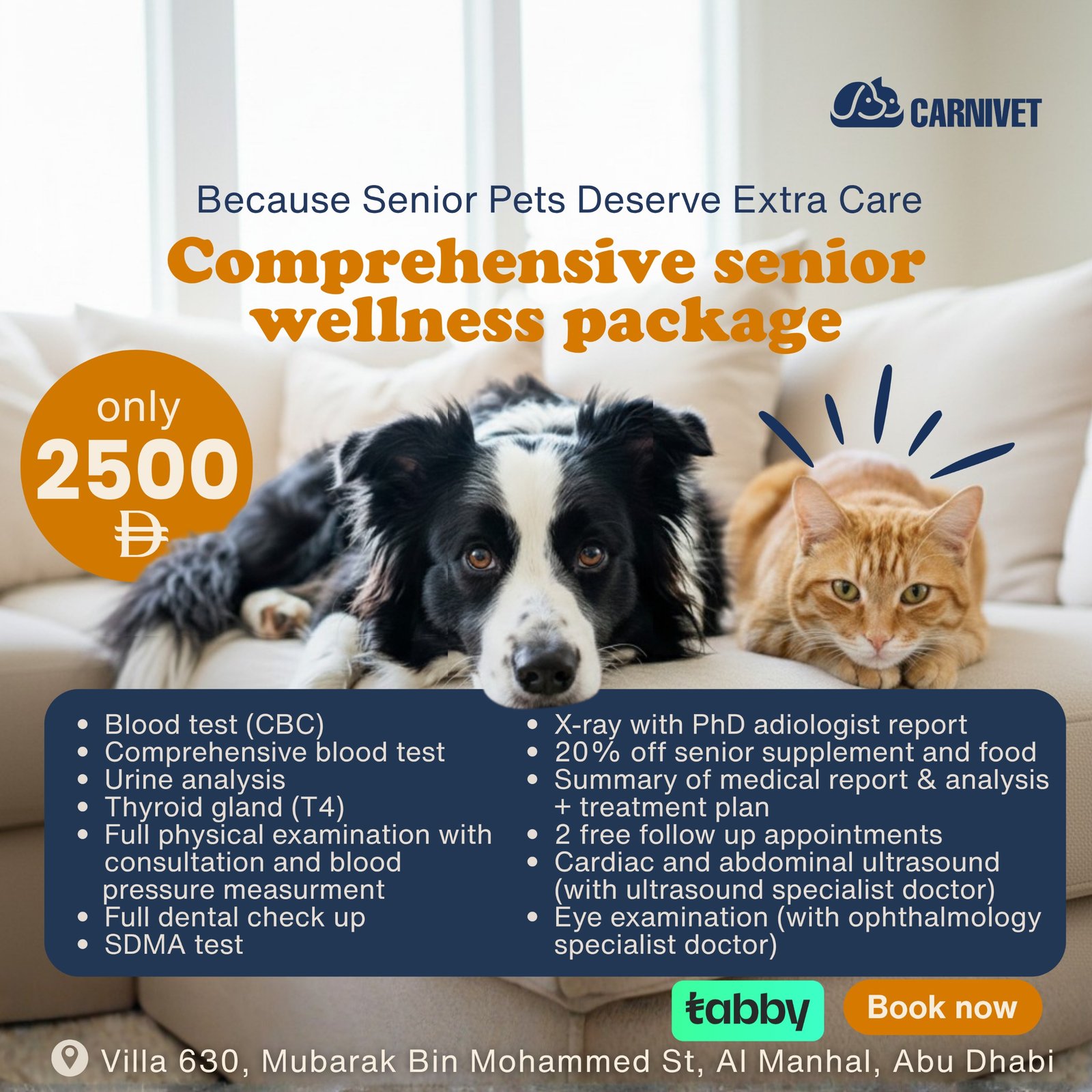 Posted on Dana MezherTrustindex verifies that the original source of the review is Google. I had a great experience working with Amjad while registering my cat with the Department of Municipalities and Transport. The whole process was smooth and handled successfully from start to finish. Communication was easy, and he completed everything quickly and efficiently. I’m very happy with the service and really appreciate his help.Posted on frankie cabalesTrustindex verifies that the original source of the review is Google. I just want to thank carnivet vet clinic,the Dr.and the staff are all professional and accommodating, thank you for your service and help, God blessPosted on Mouza AlhammadiTrustindex verifies that the original source of the review is Google. Thank you so much for the wonderful care you provided for Caramel. The grooming team did an amazing job – very professional, gentle, and attentive. I truly appreciate your kindness and dedication. Highly recommended!Posted on Matthew SamuelsTrustindex verifies that the original source of the review is Google. Took my cat in for grooming and would highly recommend anyone to take their pets there. Very professional, efficient and they do a really good job.Posted on Alisha ChhetriTrustindex verifies that the original source of the review is Google. I had an amazing experience with this clinic. Their overall service was excellent I got everything done there, from vaccinations to neutering, and it was all handled very professionally and smoothly. They also offer boarding for cats, and I felt completely at ease leaving my cat with them. They sent me daily video updates of my cat, which I really appreciated. The staff were kind, helpful, and genuinely care about the animals. My cat came back calm, healthy, and well looked after, which honestly says everything. I highly recommend them to anyone looking for a place they can truly trust with their pet.Posted on Celine HudaTrustindex verifies that the original source of the review is Google. Thank you carni vet very professional and helpful staff From reception to the DR thank you againPosted on amr aklTrustindex verifies that the original source of the review is Google. مشكور دكتور فادي عالمعاملة اللطيفة والاهتمام ونظافة المكان صراحة انصح بالمكان الجميل جدا 🫶🏻